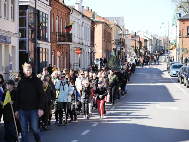 Renginys prasidėjo iškilminga kraštų eisena Respublikos gatve, suformuojant įspūdingą rikiuotę Turgaus aikštėje. Skautus lydėjo Telšių meno mokyklos pučiamųjų orkestras (vadovas Darius Jurgutis), o šventinę nuotaiką papildė dvi žavios meškutės, kurios kartu su skautais žaidė, pozavo nuotraukoms ir kėlė nuotaiką.